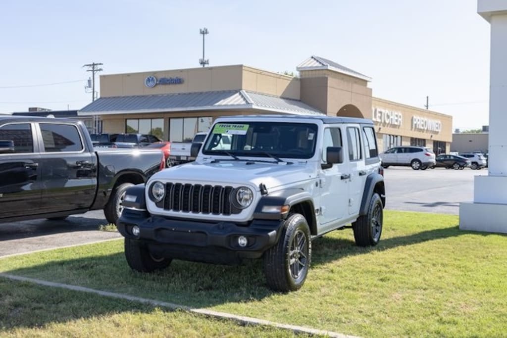 Bright White Clearcoat 2024 Jeep Wrangler Sport S 2.0L I4 DOHC 4WD ***ANOTHER FLETCHER 1-OWNER VEHICLE***, ***POWER WINDOWS & LOCKS***, ***PUSH BUTTON START***, ***BLUETOOTH HANDS FREE MOBILE***, ***TOUCH SCREEN***, ***REAR VIEW BACKUP CAMERA***. Odometer is 903 miles below market average!